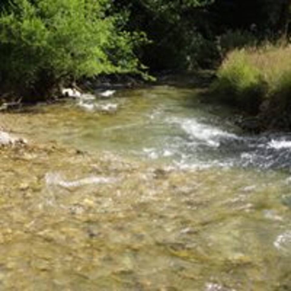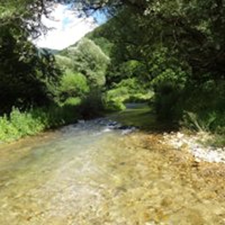 L'Aniene propriamente detto, la cui sorgente è quella più lontana dalla foce e ha il nome di Capo Aniene o Sorgente di Riglioso ed è posta a 1 200 m s.l.m. sul versante meridionale del Monte Tarino (1 959 m): in realtà la sorgente più copiosa (1,5 m³/s) è posta un po' più a valle presso le grotte del Pertuso, tra Filettino e Trevi, appunto in provincia di Frosinone.