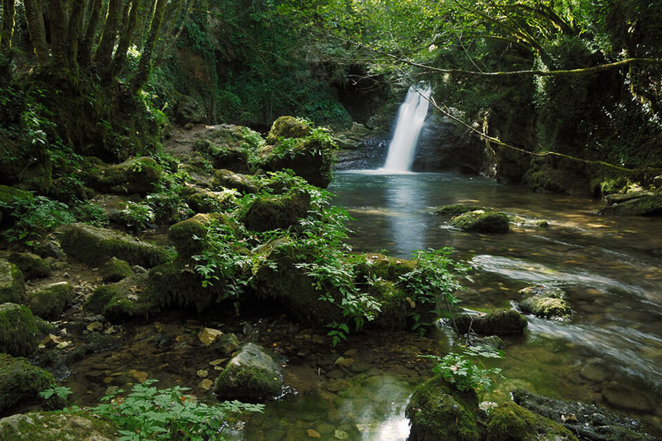 Il Simbrivio invece nasce a Vallepietra (RM) da una serie di sorgenti che scaturiscono dal Monte Autore (1 853 m), dal Monte Tarinello e dal Monte Arsalone e confluisce da destra nell'Aniene dopo Trevi (FR). Poco prima della confluenza con il Simbrivio, l'Aniene forma le caratteristiche Cascate di Trevi. Alcuni affermano che esse negli anni sessanta del XX secolo fecero da ambientazione d'innumerevoli scene dei film di genere mitologico e peplum, ma si tratta di un errore, perché la location principe di tali film fu invece offerta dalle cascate del Treja.