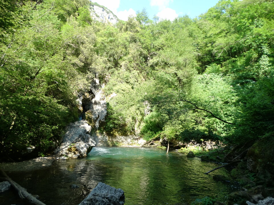 Nasce sul confine tra Lazio e Abruzzo dai Simbruini (il nome di questo sistema montuoso deriva dal latino sub imbribus che significa sotto le piogge), tra le province di Roma e di Frosinone.